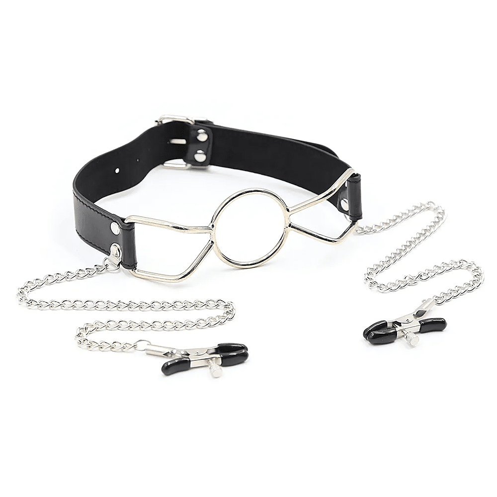 Mouth Ring gag with Nipple Clamps