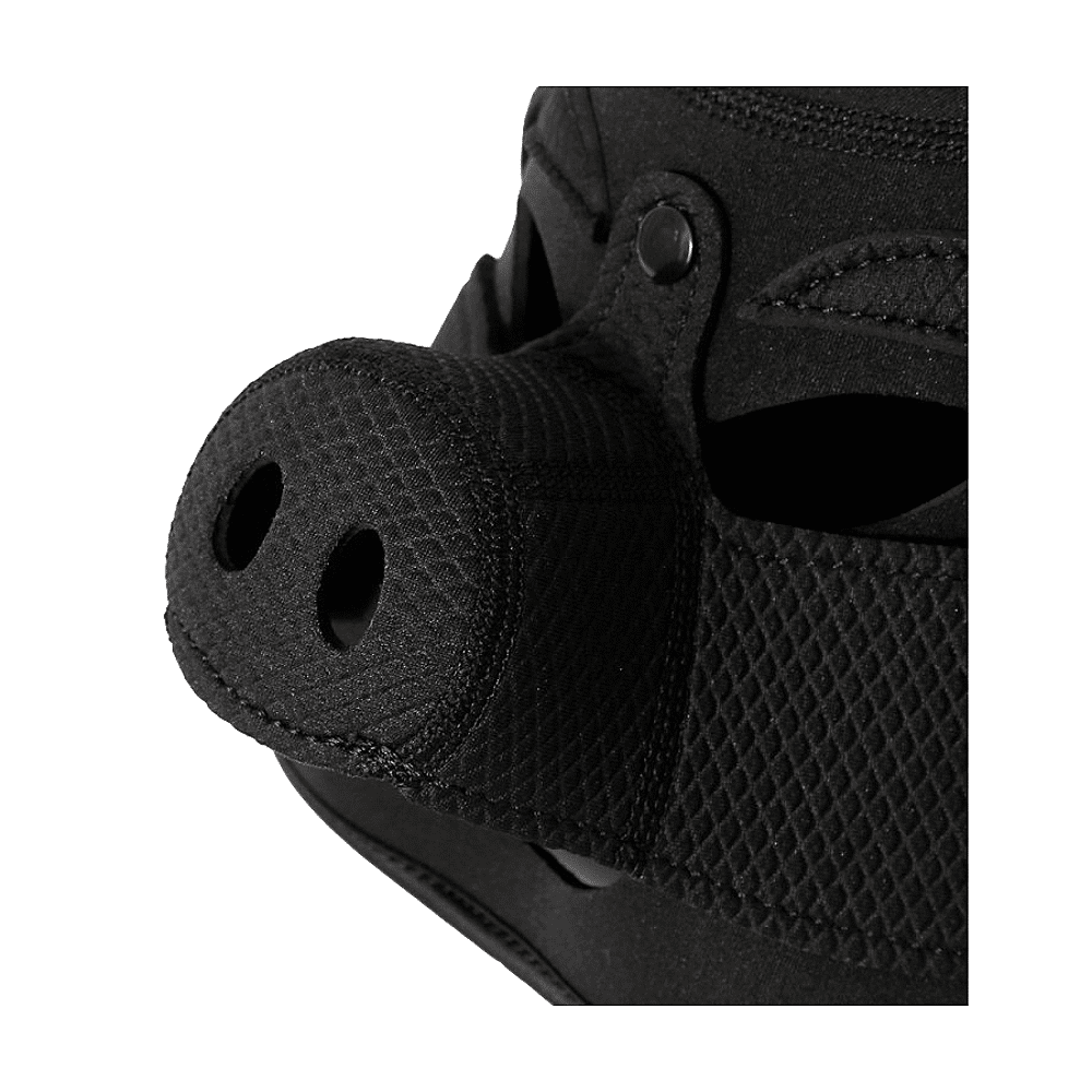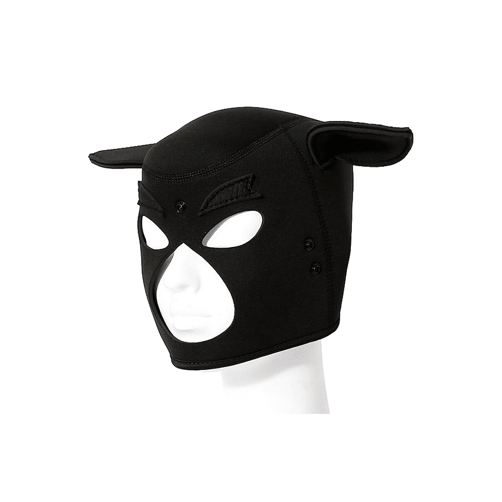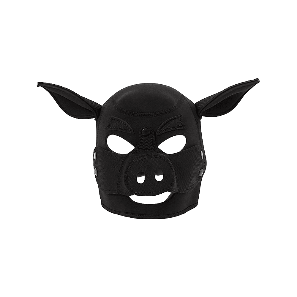 Cette cagoule noire est conçue en forme de tête de cochon.