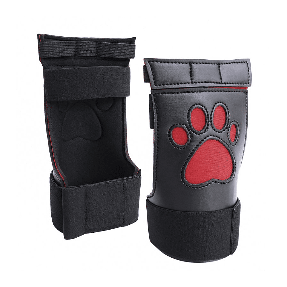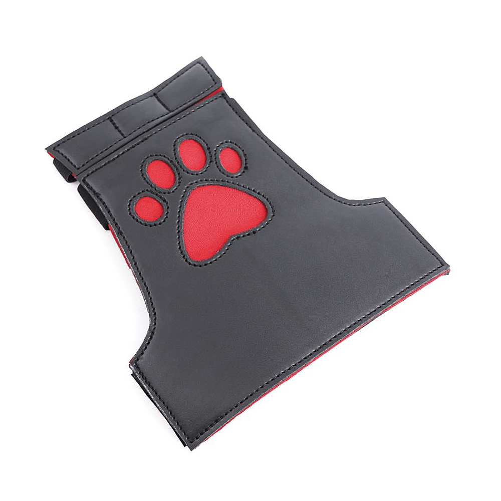 Gants en similicuir avec des pattes de chien rouges, un intérieur en néoprène confortable et un réglagle simple grâce des velcro et des sangles élastiques.