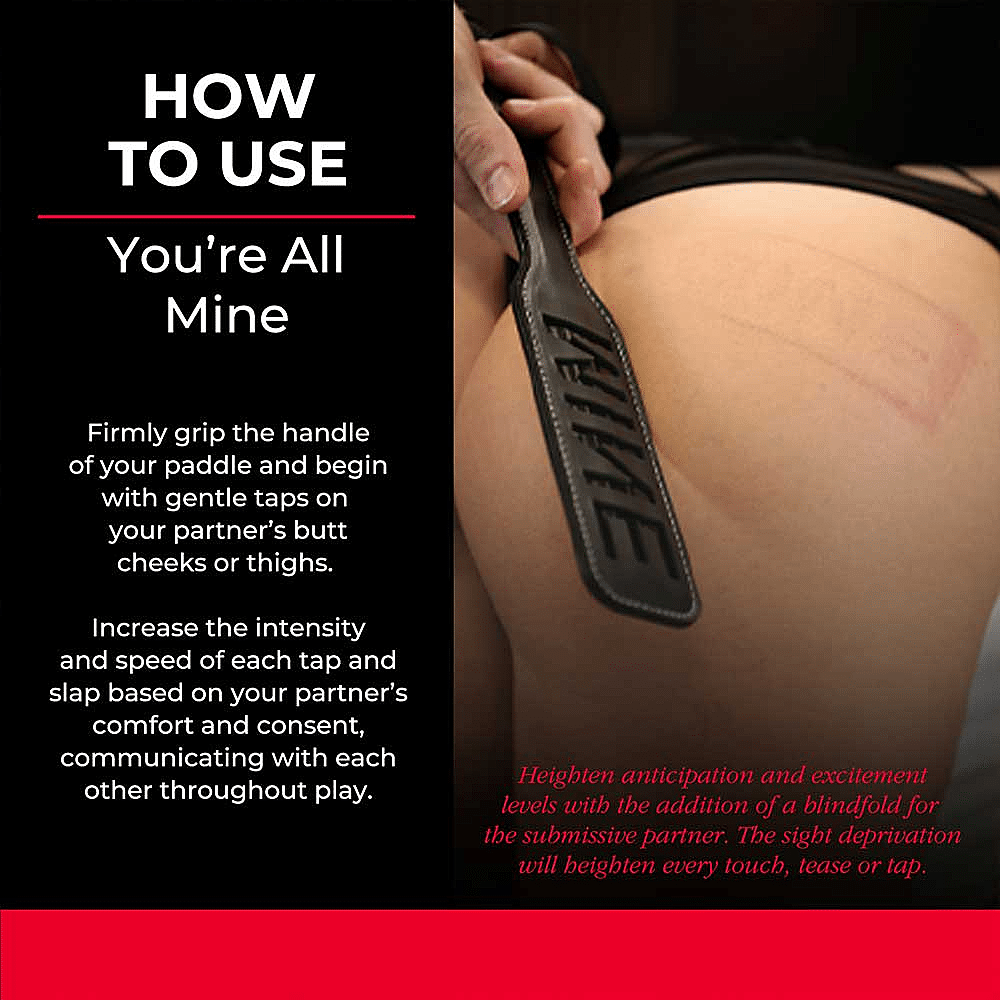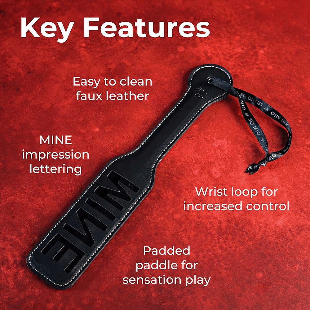 Conçue pour ceux qui aiment jouer avec une touche de domination, ce paddle arbore le mot « MINE » audacieusement découpé pour laisser une trace sur la peau de votre partenaire (avec son consentement, évidemment).