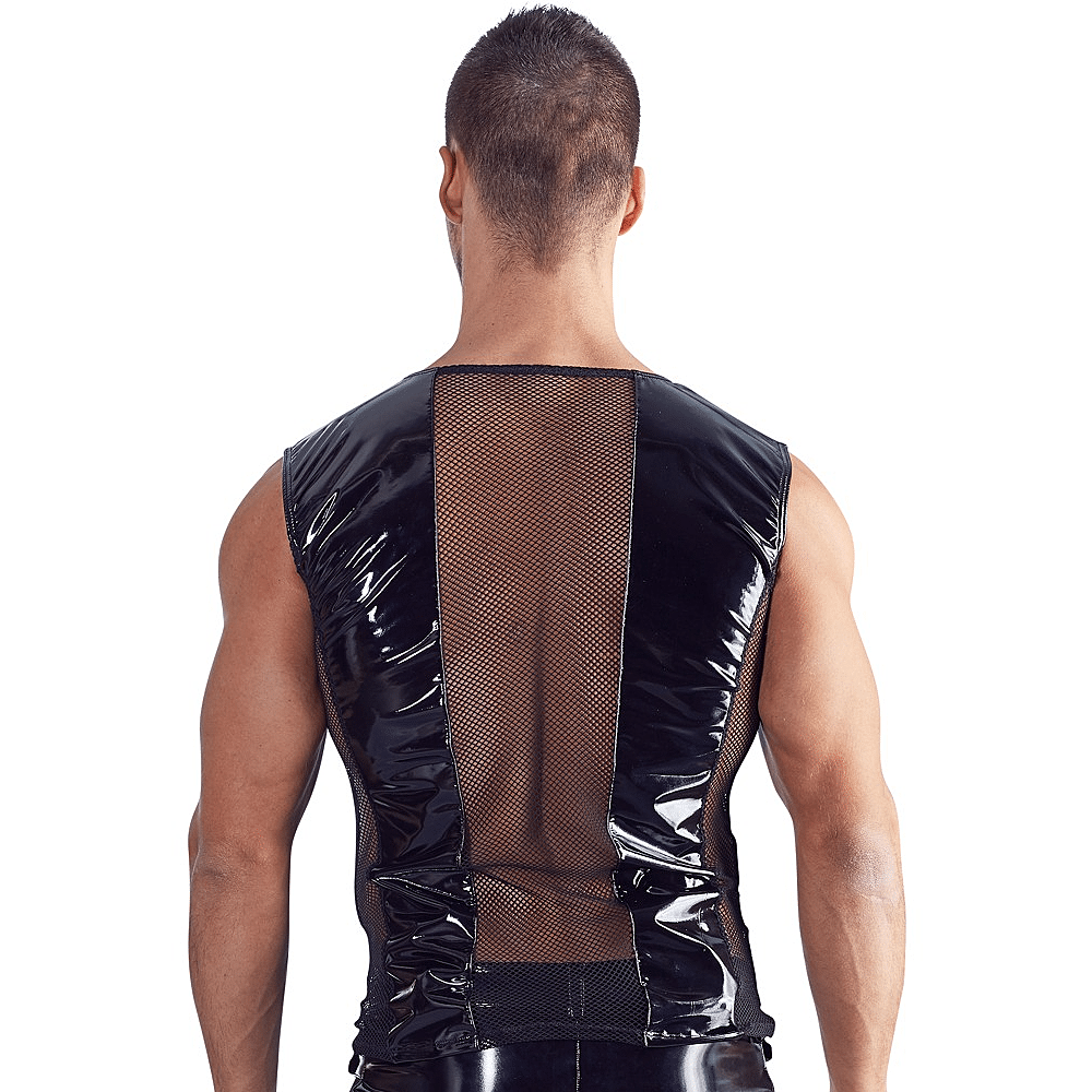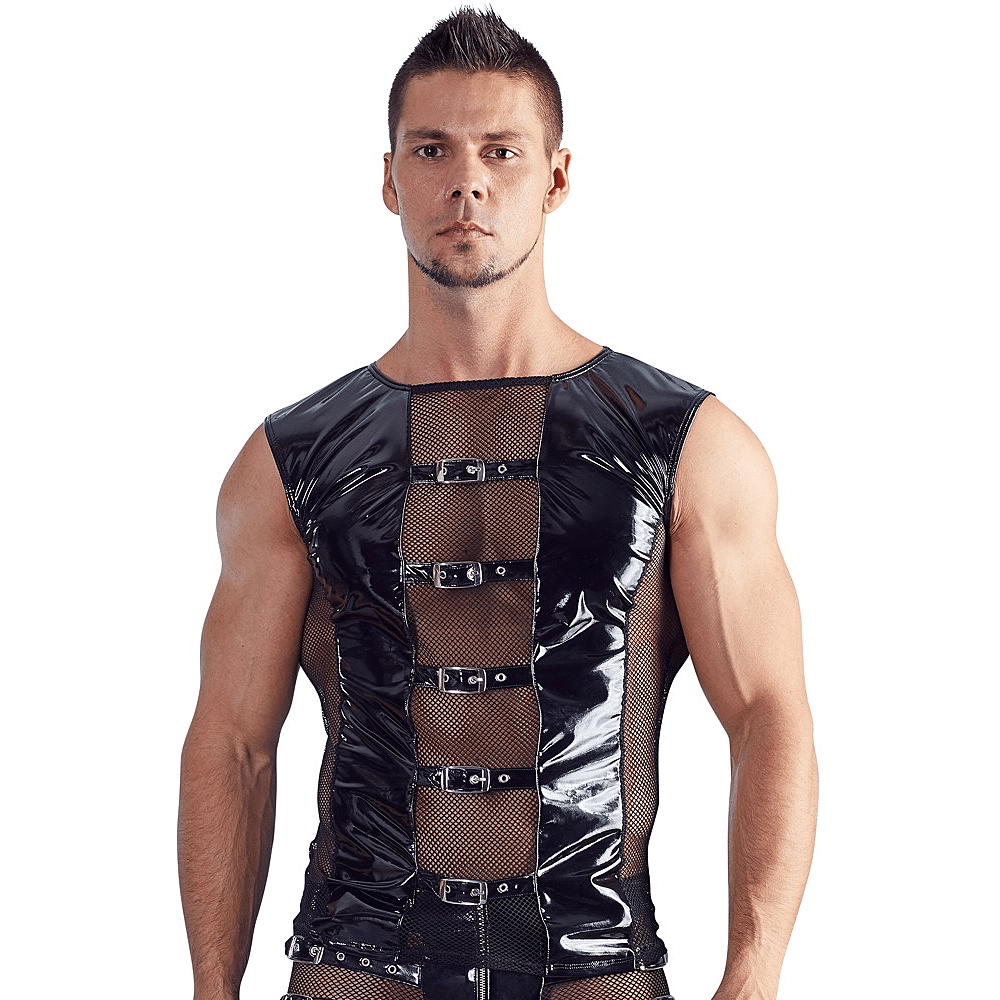 T-shirt en vinyle avec des inserts en maille et 5 sangles à l'avant.