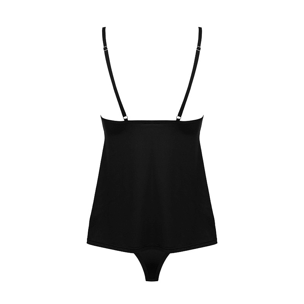 - L'ensemble comprend un haut noir et une culotte assortie.