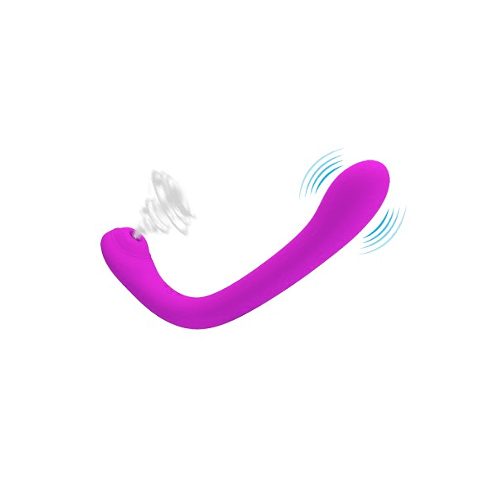 Ce fabuleux sextoy flexible de Pretty Love, réunit un vibromasseur doux et ergonomique d'un côté et un stimulateur clitoridien par aspiration de l'autre,