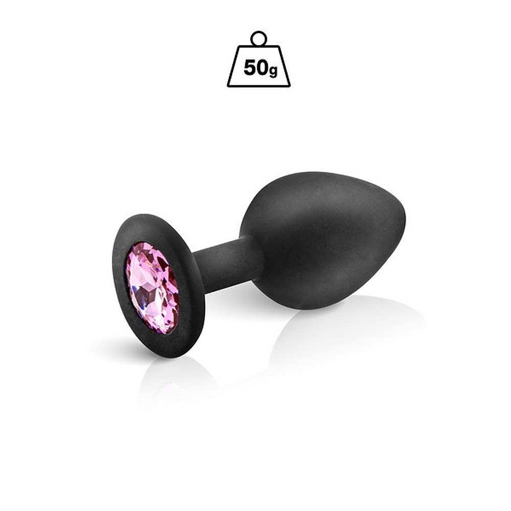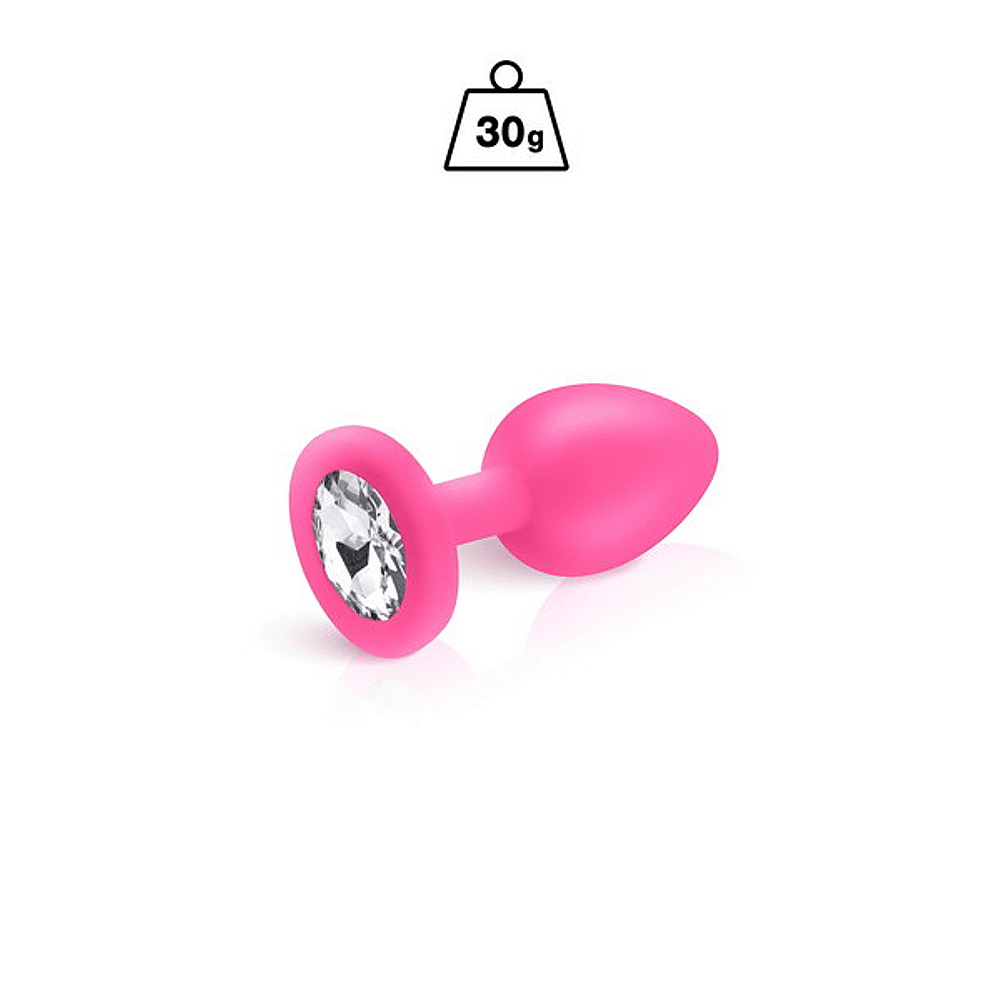 Deze roze siliconen anaalplug is afgewerkt met een kristallen juweel.