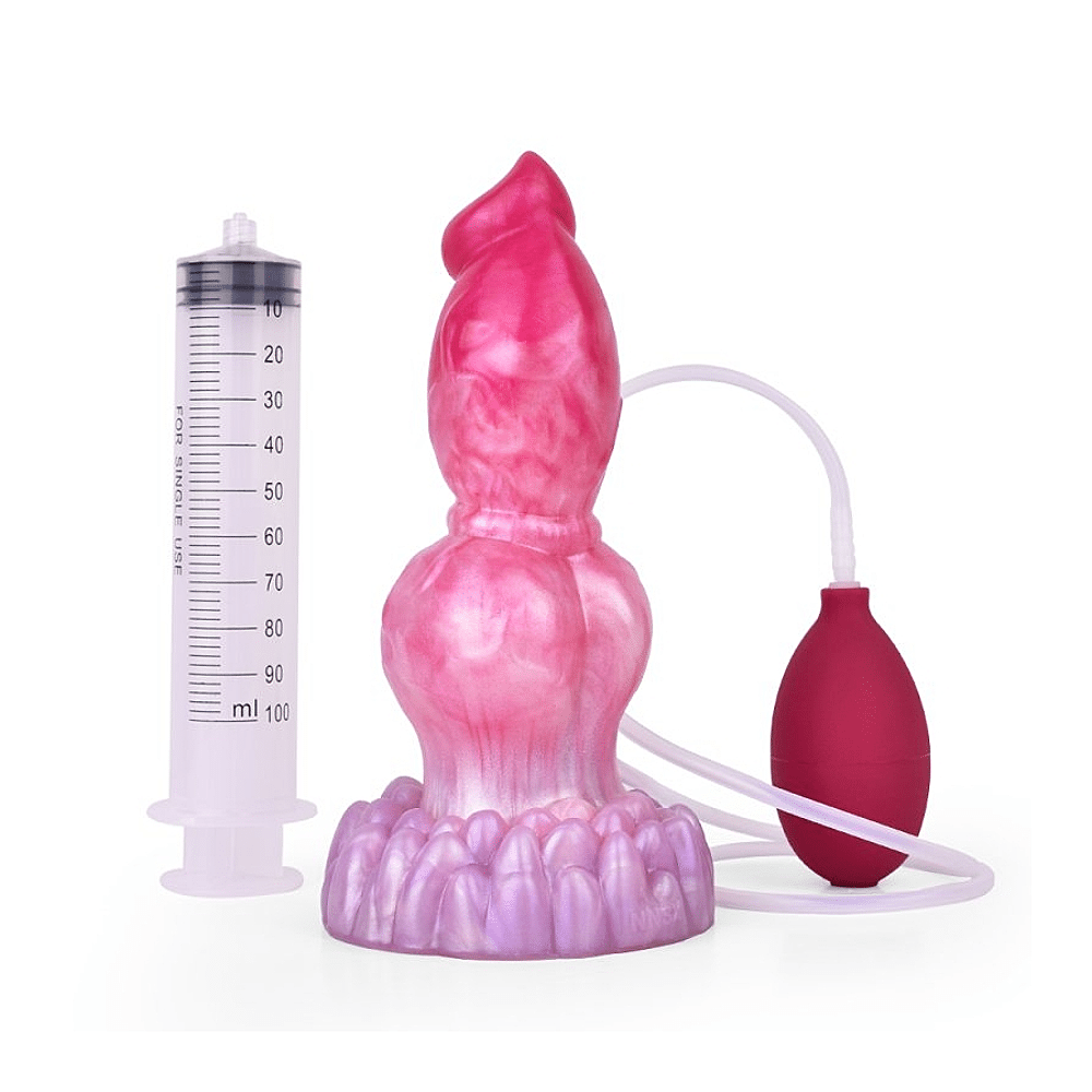 Deze monsterlijke dildo in felle kleuren wordt geleverd met een spuit waarmee je een vloeistof naar keuze kunt injecteren, en is uitgerust met een bal die je alleen maar hoeft in te drukken om een ejaculatie na te bootsen!