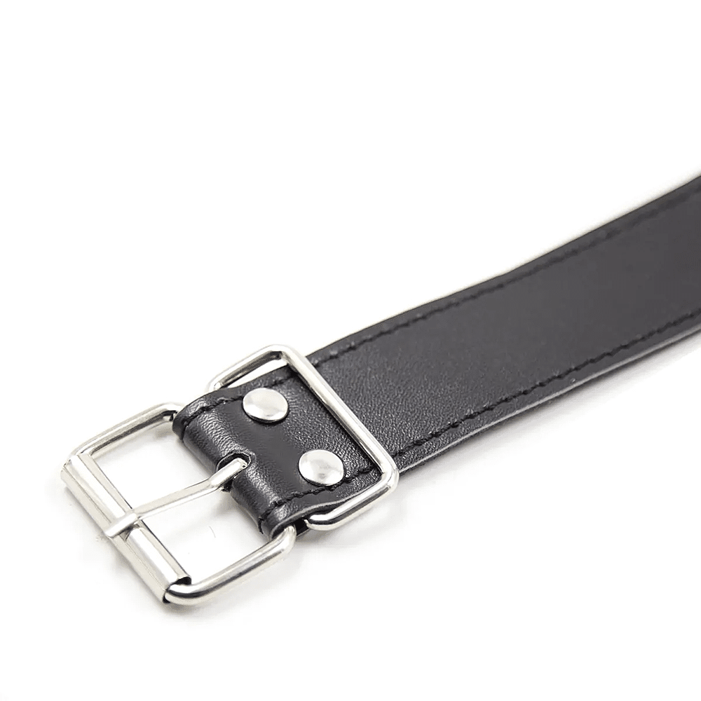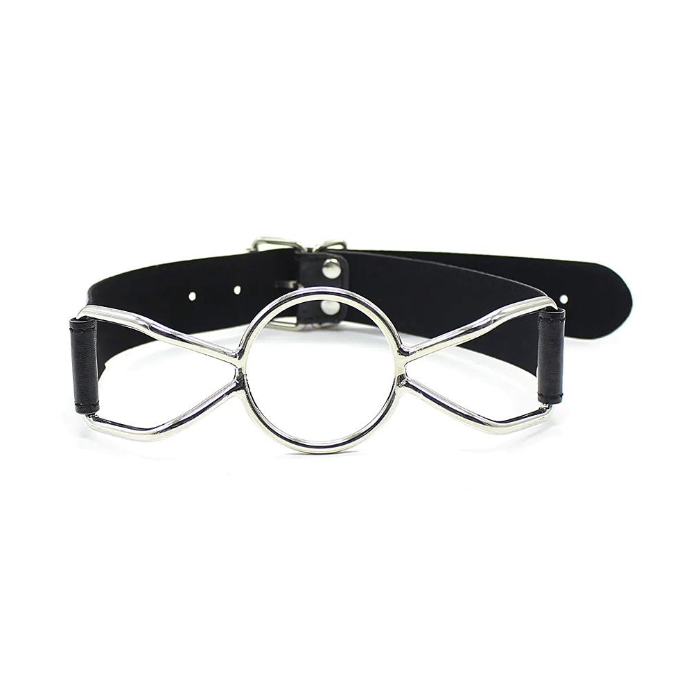 Gag met een verstelbare riem van kunstleder en een metalen ring die de mond van je partner open houdt.