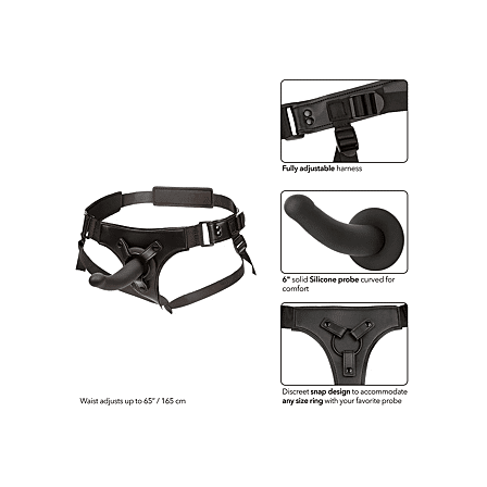 Deze veelzijdige set bestaat uit een jockstrap-harnas, een siliconen dildo en 2 verwisselbare metalen ringen voor een perfecte pasvorm.