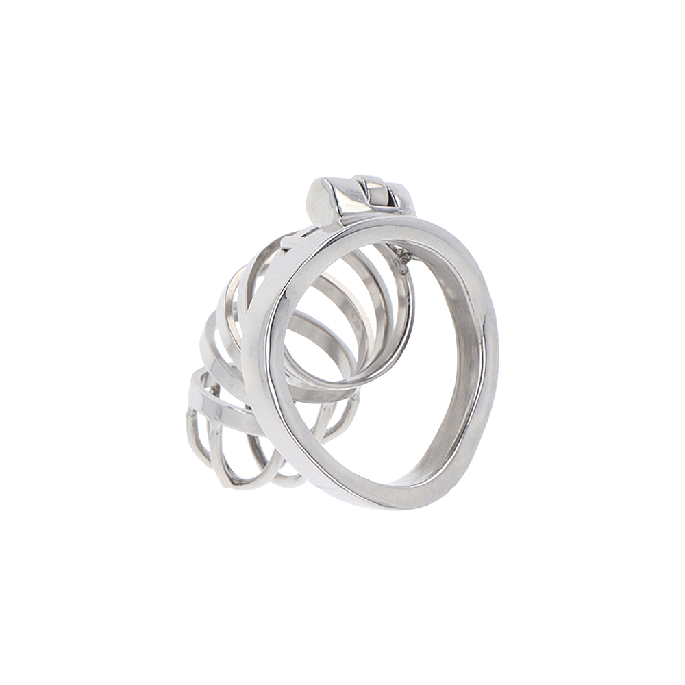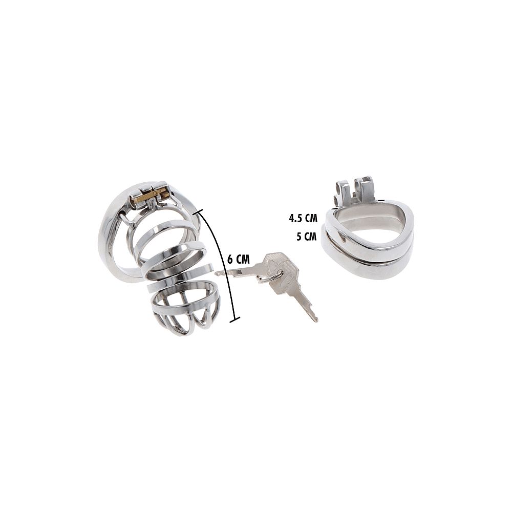 Deze stalen kuisheidskooi heeft een veilig sluitmechanisme dat veiligheid en discretie garandeert, terwijl de pasvorm zich aanpast aan de meeste penismaten.
