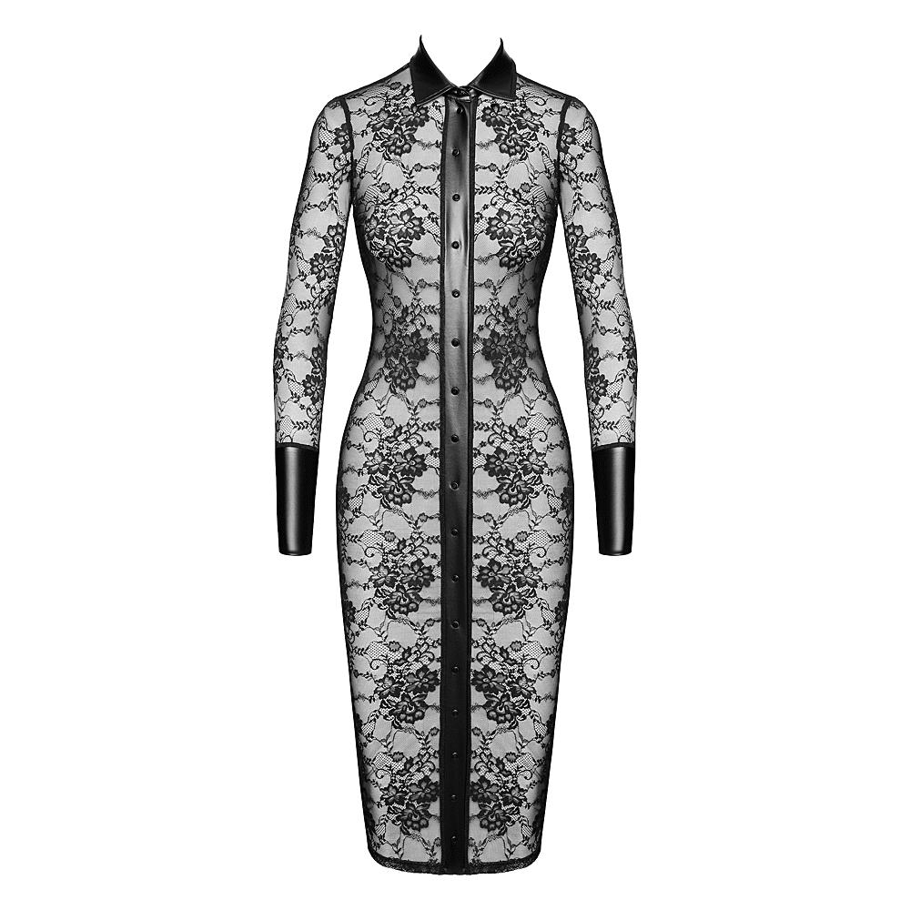 Prachtige kanten jurk met drukknopen over de hele lengte aan de voorkant.