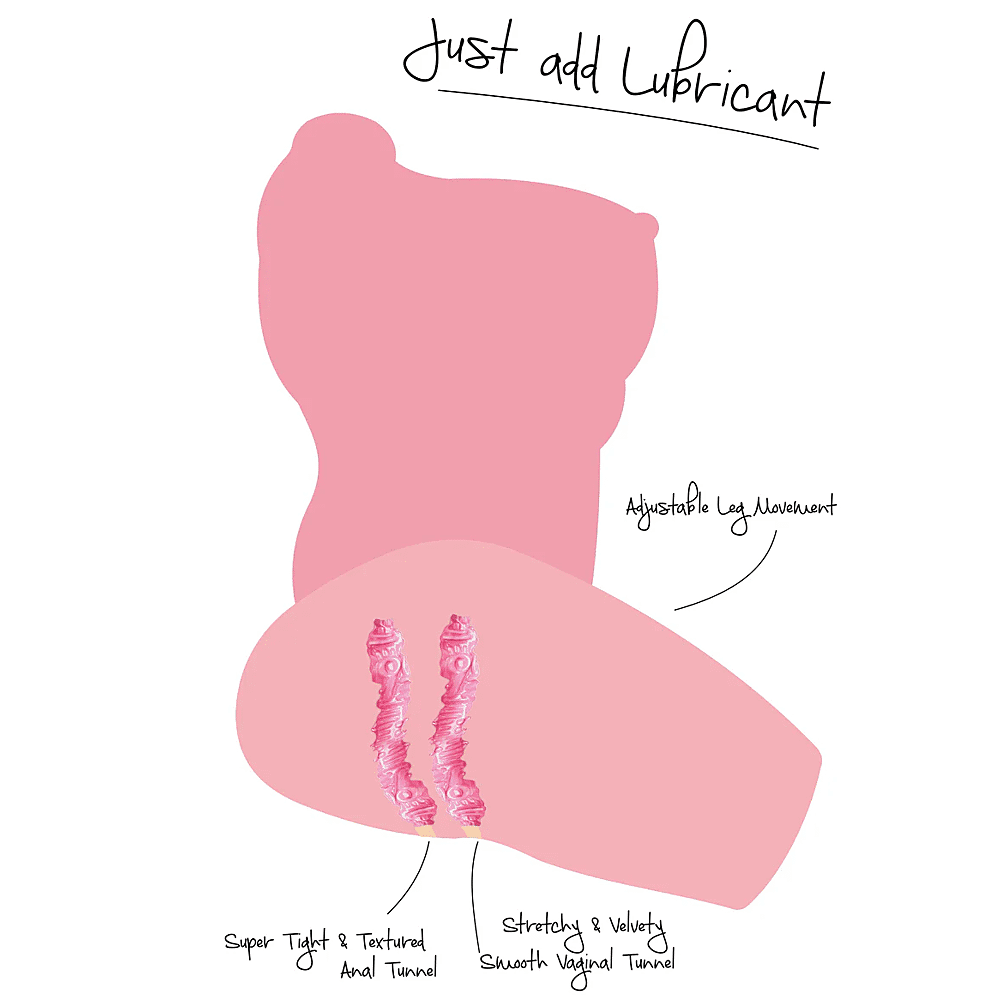 Het heeft ook een vaginaal kanaal en een anaal kanaal, beide aangenaam gestructureerd voor maximale sensaties.