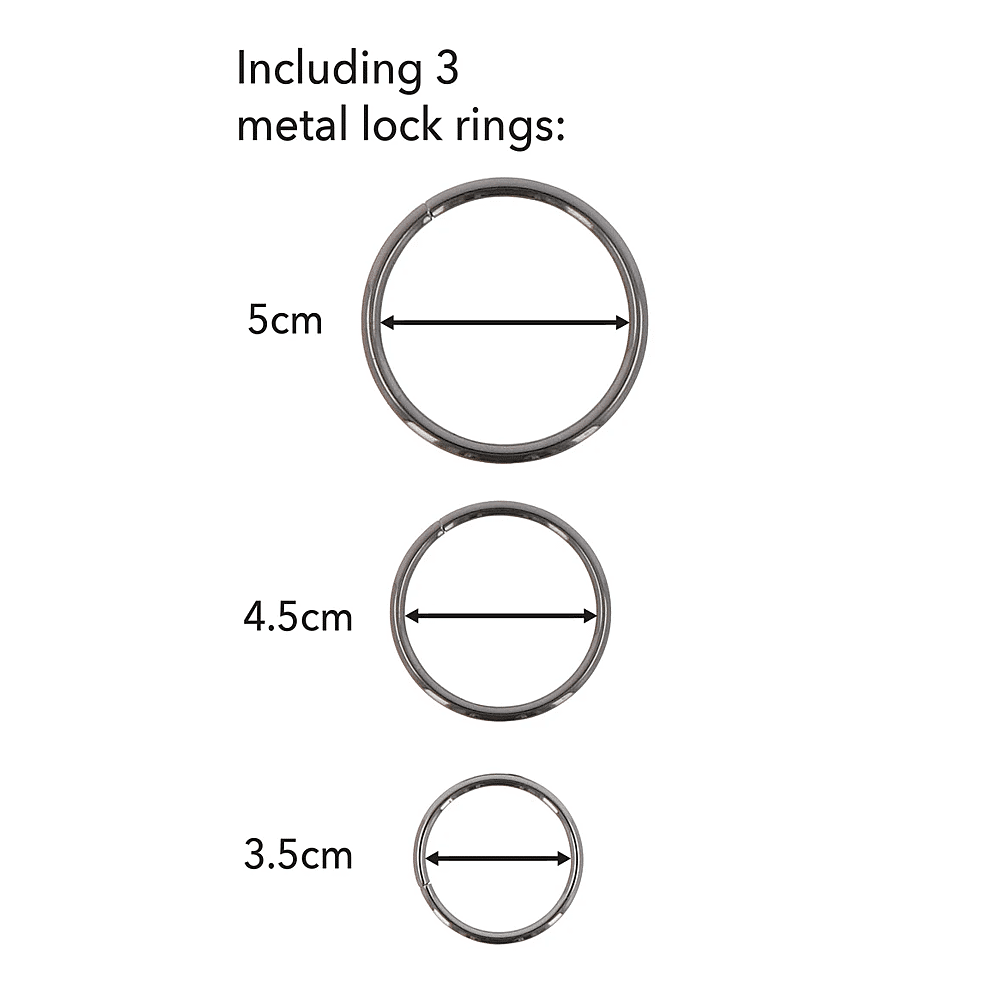 - Met 3 verschillende ringen: 3,5, 4,5 en 5 cm